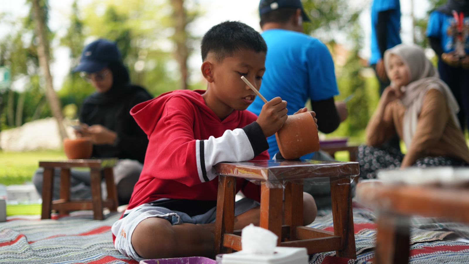 Sementara itu, workshop membuat dan mewarnai gerabah yang digelar pada 31 Agustus 2025 menghadirkan pengalaman langsung bagi masyarakat untuk berkarya di lingkungan candi. Kegiatan ini dilaksanakan bekerja sama dengan Sanggar Lemah Urip, komunitas kreatif anak muda dari Desa Nglipoh, dan berhasil menarik minat peserta lintas usia. Meskipun jumlah peserta masih terbatas, masyarakat tetap dapat mengikuti workshop serupa di waktu mendatang melalui reservasi ke pihak sanggar.