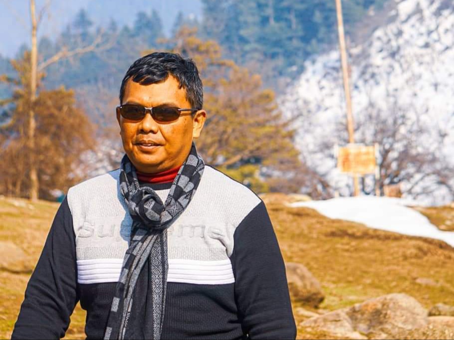 Agus Budi Rachmanto saat mengabadikan diri di perbatasan Nepal yang terletak di kaki Gunung Himalaya. Foto: Dok. Pribadi.