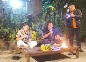 Selain doa dari 6 perwakilan agama dan penghayat kepercayaan, juga dilakukan teatrikal singkat “Wayang Obong” oleh Eko Hand. Membakar wayang-wayang kertas rampokan buta dan berbagai karakter buta, karakter sengkuni dan karater tikus berdasi.