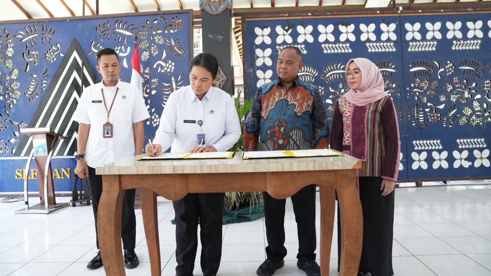 Bupati Sleman, Harda Kiswaya bersama dengan Kepala Kanwil Dirjen Imigrasi DIY, Junita Sitorus melakukan penandatanganan secara langsung.