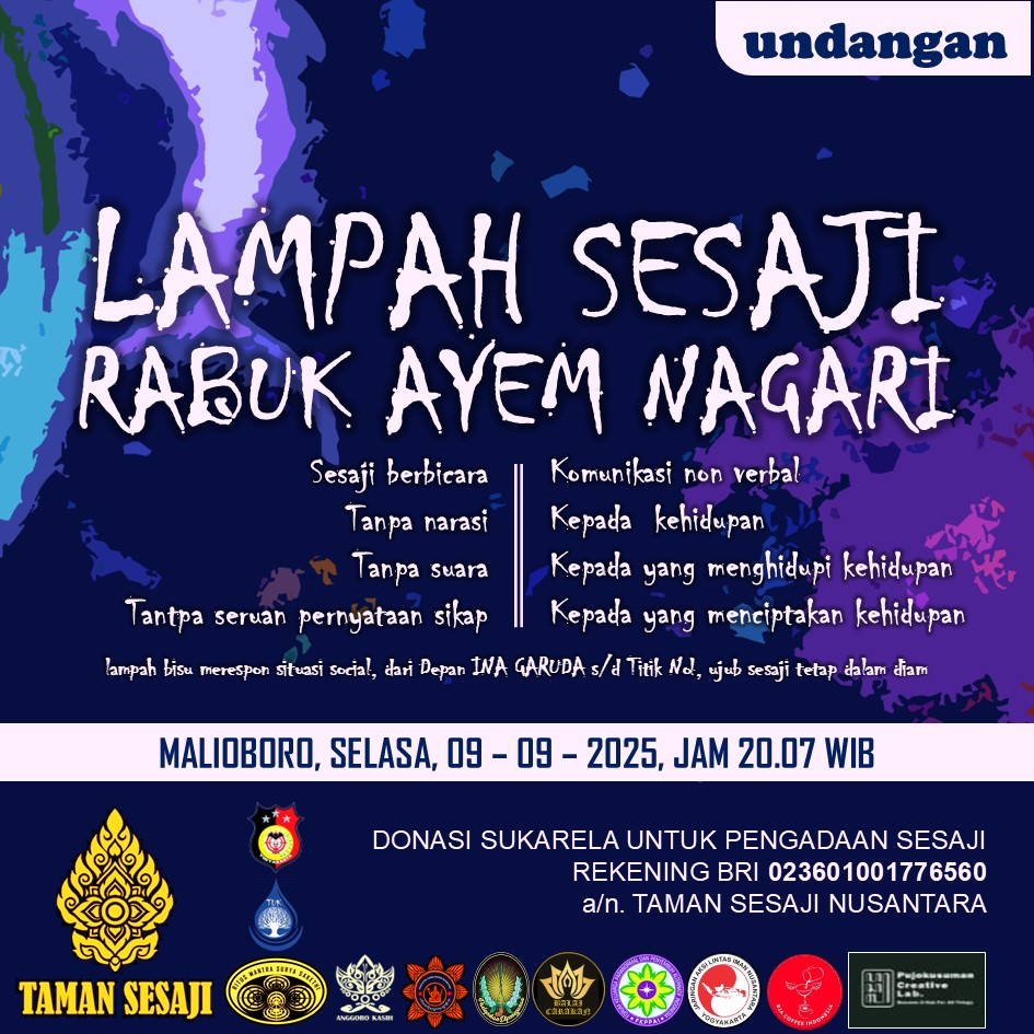 YOGYAKARTA, jogja.expost.co.id – Yayasan Taman Sesaji Nusantara didukung oleh berbagai komunitas budaya, kelompok lintas iman dan organisasi masyarakat menginisiasi gerakan Lampah Sesaji Rabuk Ayem Nagari, Selasa (9/9/2025) malam, bertempat di Jalan Malioboro.
