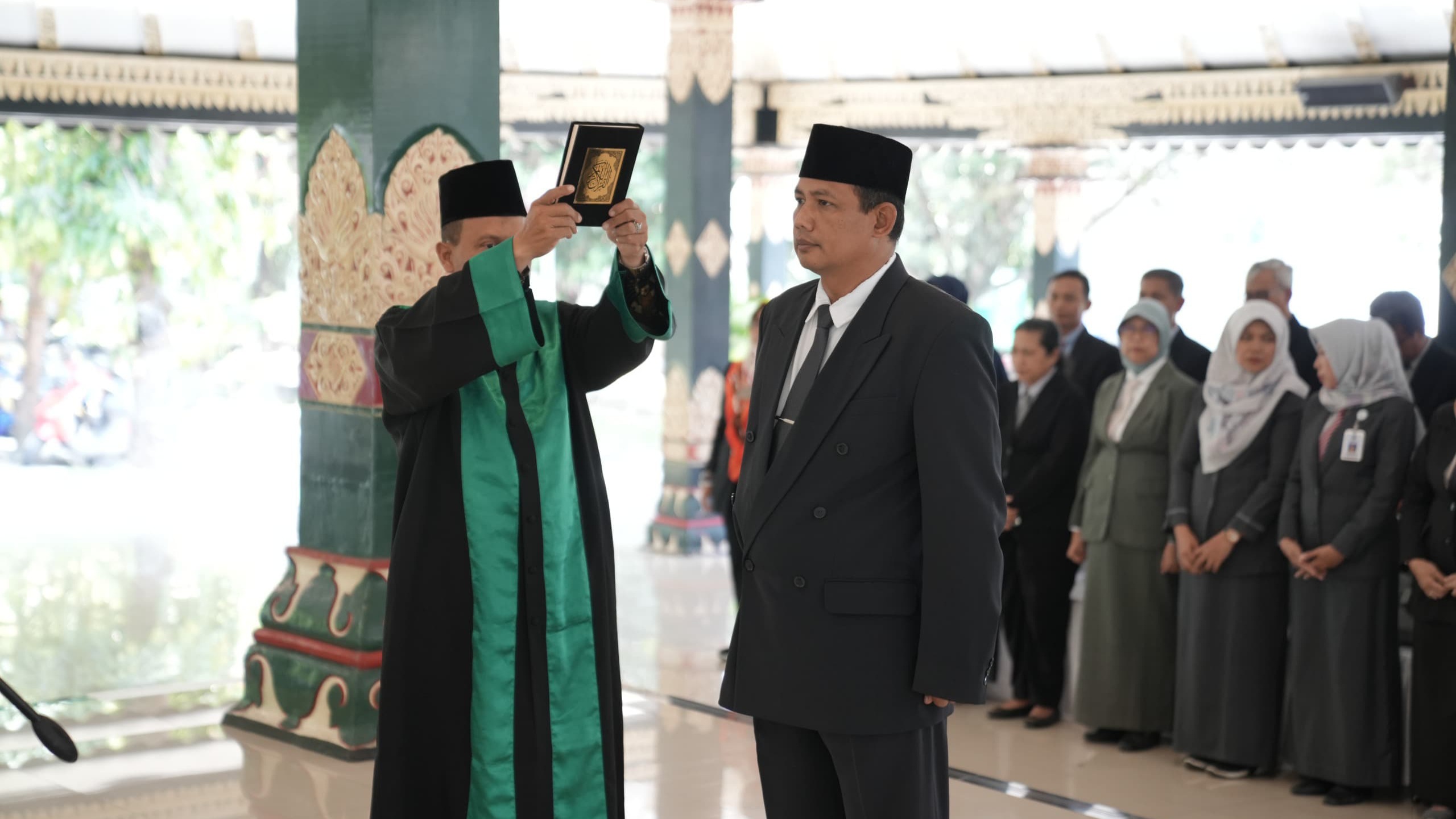 Kepala Disdukcapil Sleman terlantik, Arifin mengikuti prosesi pengucapan sumpah.