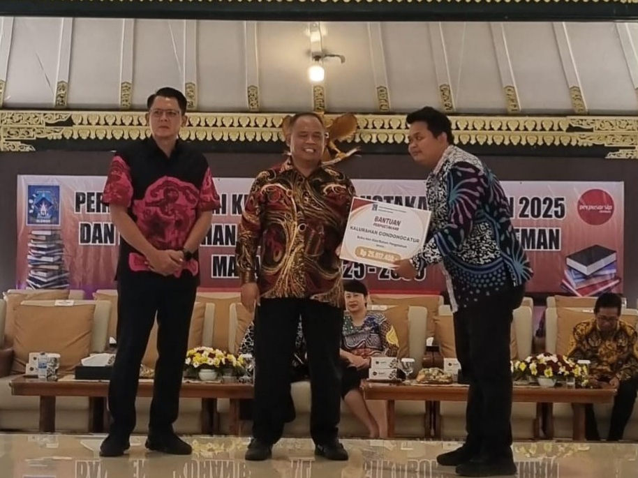 Acara dilanjutkan dengan penyerahan bantuan sarana perpustakaan berupa rak buku dan koleksi bacaan untuk beberapa kalurahan. Salah satu penerima bantuan tersebut adalah Perpustakaan Kalurahan Condongcatur, yang dinilai konsisten mendukung kemajuan literasi melalui berbagai program.