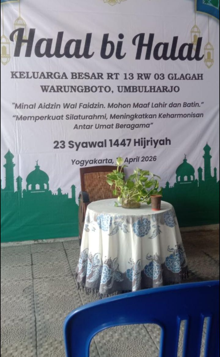 YOGYAKARTA | NasionalKu.com, 23 Syawal 1447 H / 16 April 2026 – Suasana hangat dan penuh kekeluargaan menyelimuti kegiatan syawalan yang digelar di Kampung Glagah, Kelurahan Warungboto. Acara yang dikemas dengan tema “Memperkuat Silaturahmi, Meningkatkan Keharmonisan Antar Umat Beragama” ini dihadiri oleh berbagai elemen masyarakat, mulai dari sesepuh, tokoh masyarakat, hingga seluruh warga RT 13 RW 03.