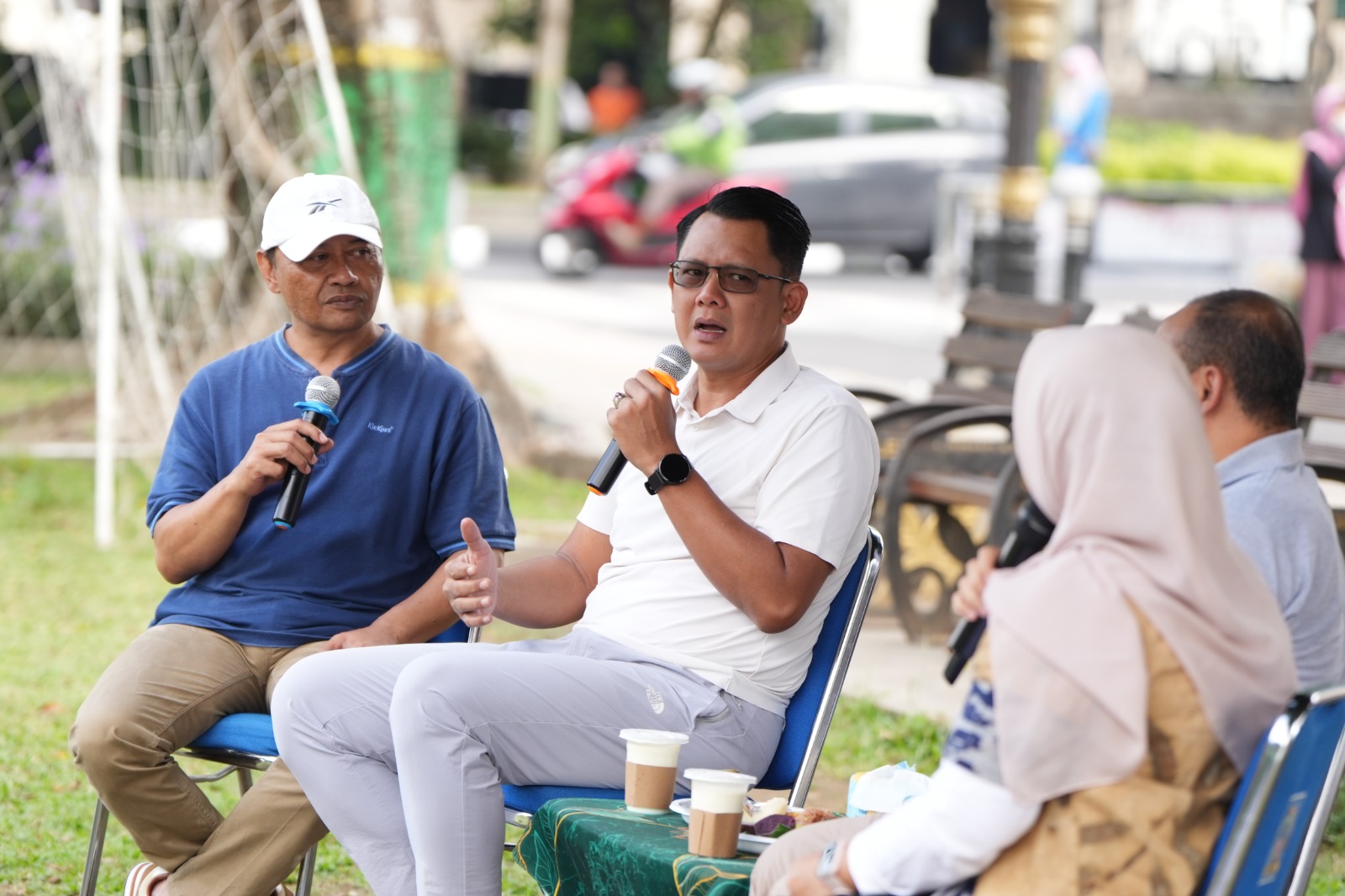 Wakil Bupati Sleman Danang Maharsa menjadi bintang tamu talk show Pasar Bela Negara di Lapangan Pemda Sleman.