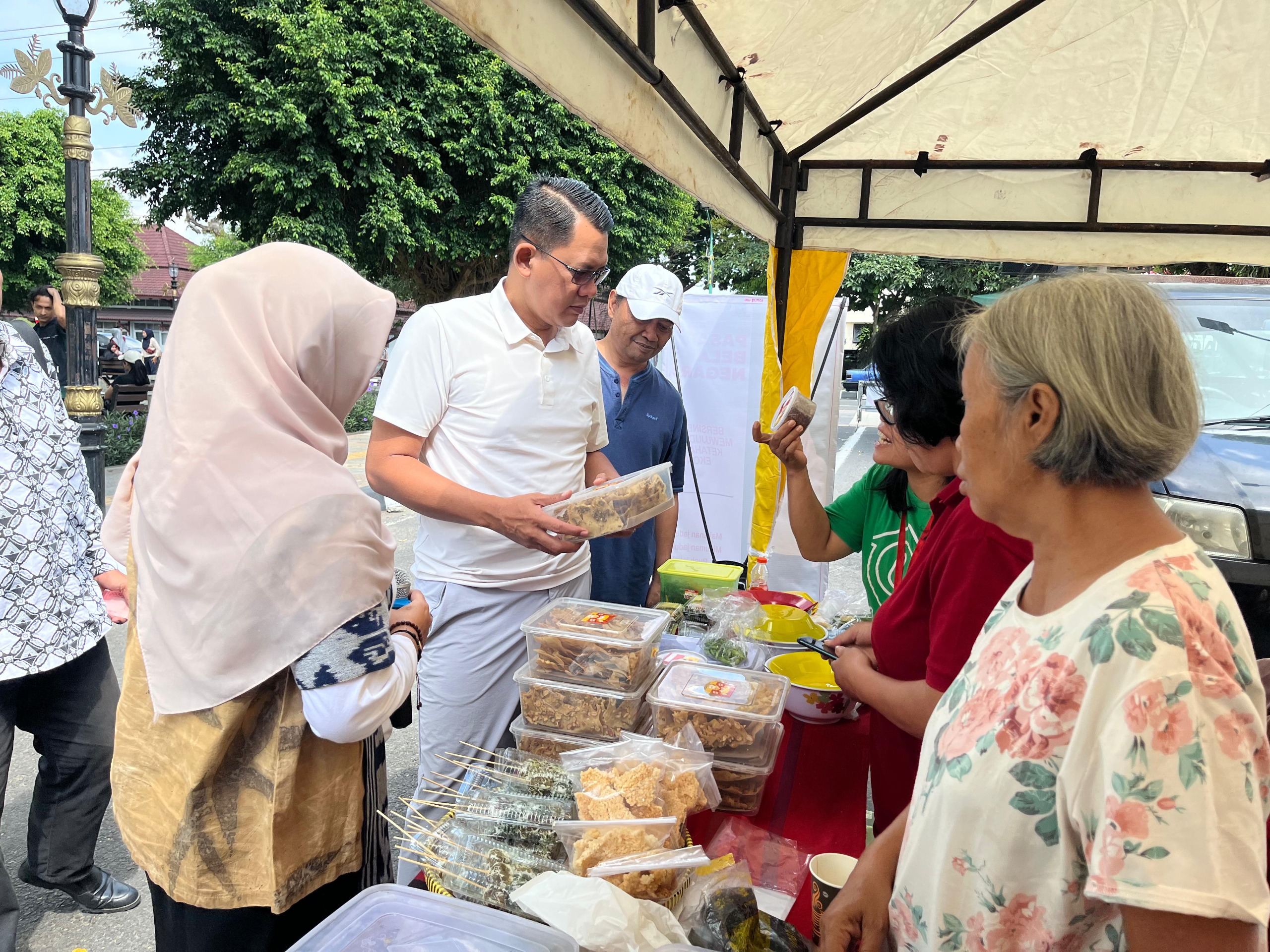 Wakil Bupati Sleman Danang Maharsa saat mengunjungi tenant UMKM di Pasar Bela Negara.