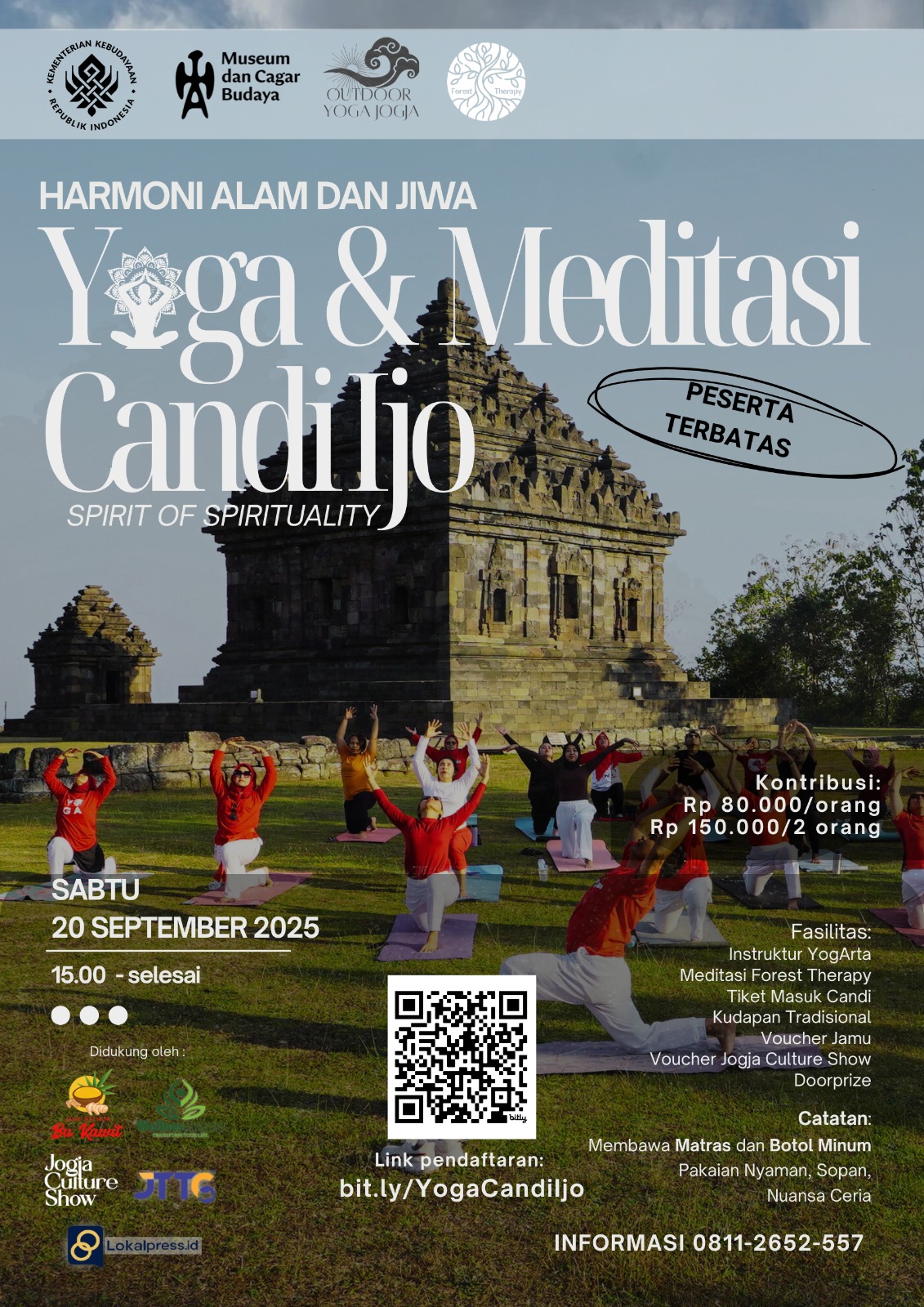 Kegiatan ini digelar oleh Museum dan Cagar Budaya bersama Outdoor Yoga Club Yogyakarta (OYC), didukung oleh Forest Therapy serta berbagai mitra. Lebih dari sekadar aktivitas fisik, program ini mengajak peserta menapaki jalan spiritual yang membangkitkan harmoni jiwa sekaligus penghormatan kepada warisan budaya leluhur. Sunset di Candi Ijo akan menjadi penutup alami, sebuah perjumpaan indah antara cahaya dan kesadaran.